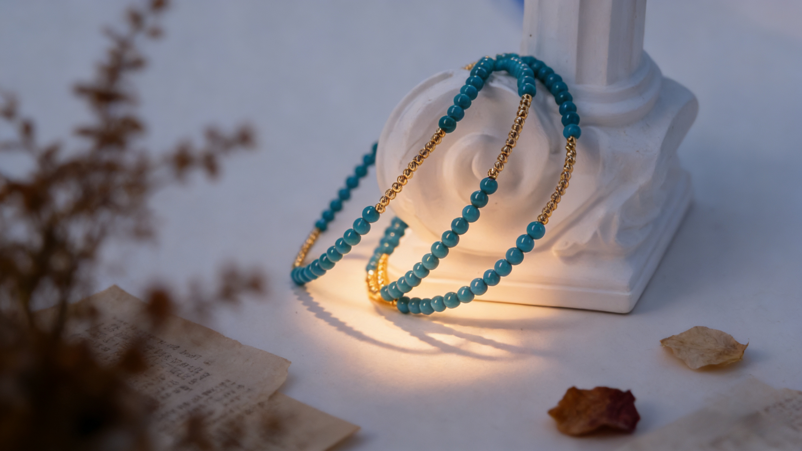 Turquoise Ci Hang Bracelet (Sandalwood & Enamel Gold Beads)